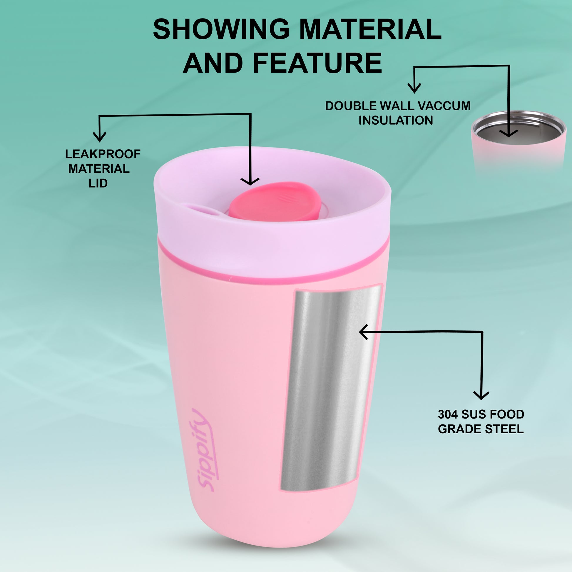 Sippify SipMate Mug– Travel Coffee Tumbler Sipper (Pink)